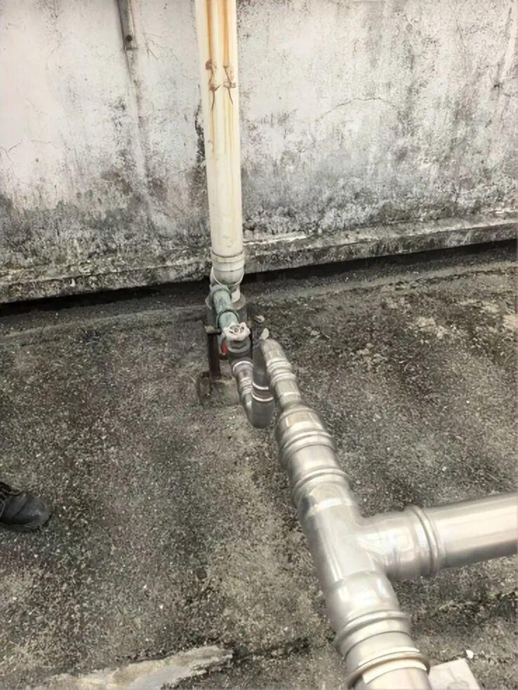 位于屋顶的饮用水管,从屋顶穿过后进入室内