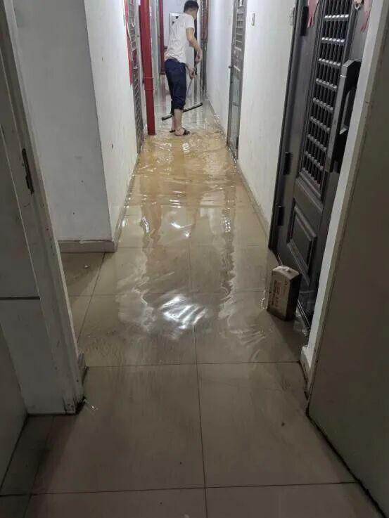 2025年5月,老旧水管爆管,住户家及走道进水现场。